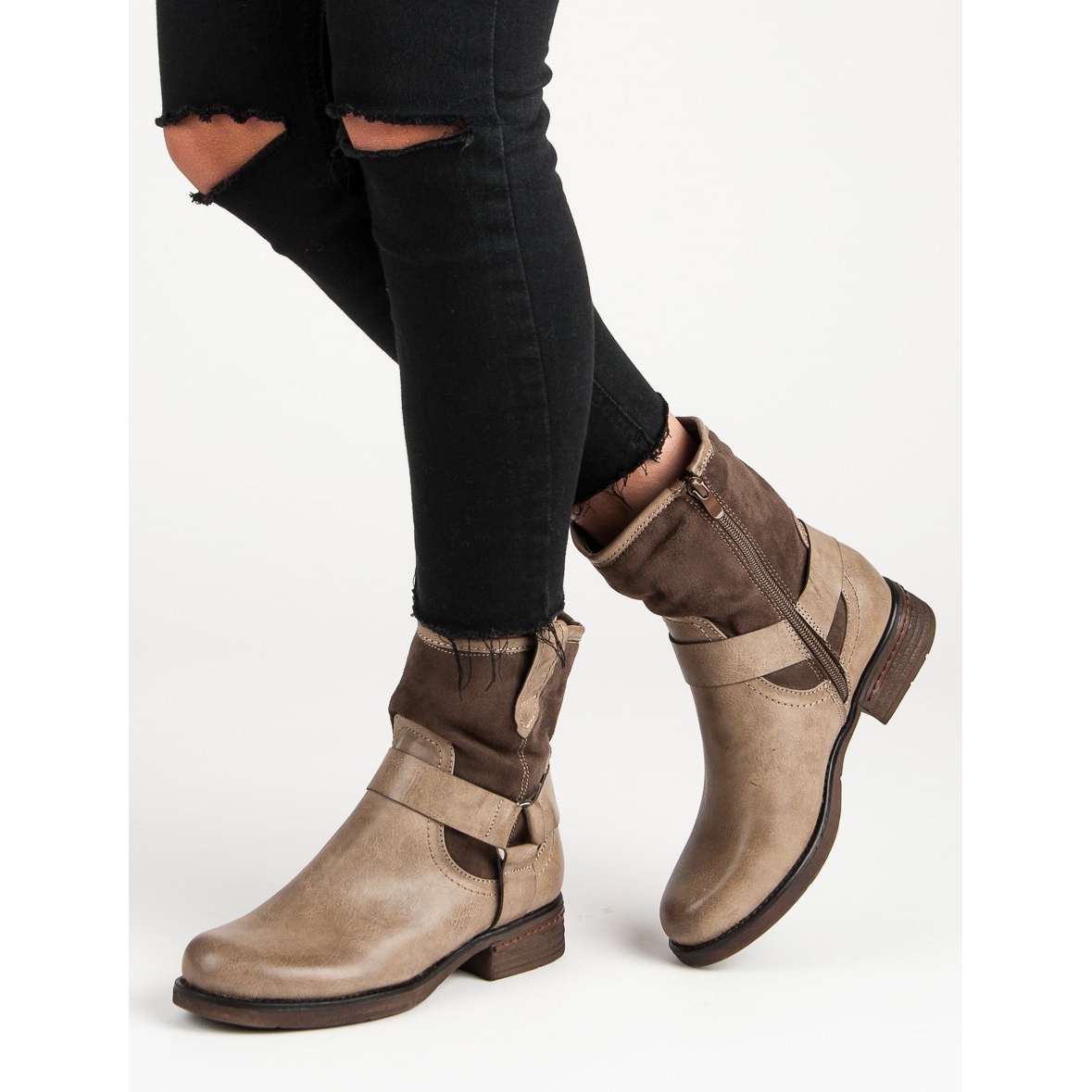 **Super Mode Beige Workers** - een perfecte keuze voor koudere dagen! Deze stijlvolle enkellaarsjes voor dames combineren een modern design en draagcomfort. Ze zijn gemaakt van lichtbruin ecoleer en onderscheiden zich niet alleen door hun esthetiek, maar ook door hun functionaliteit.