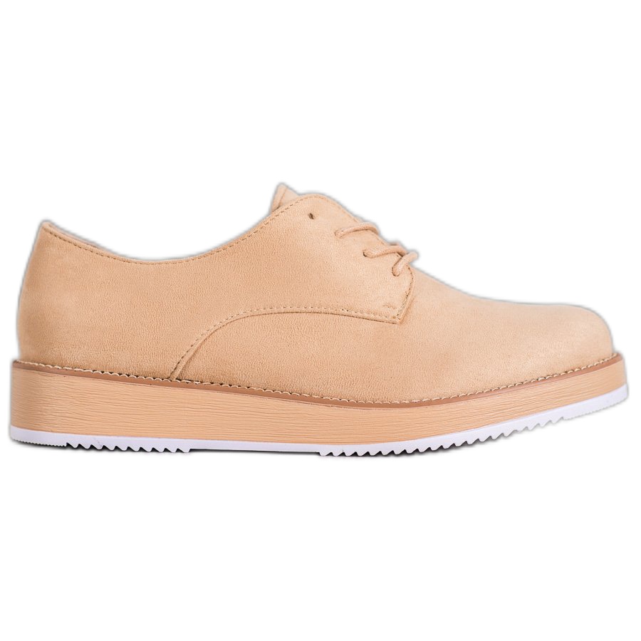 Deze lichtbruine schoenen zijn gemaakt van hoogwaardige materialen en zijn duurzaam, waardoor ze lang meegaan, zelfs bij intensief dragen. De buitenlaag van de schoenen is gemaakt van ecologisch suède leer, terwijl de binnenkant is gevoerd met ecologisch leer, wat zorgt voor comfort en draagplezier de hele dag.
