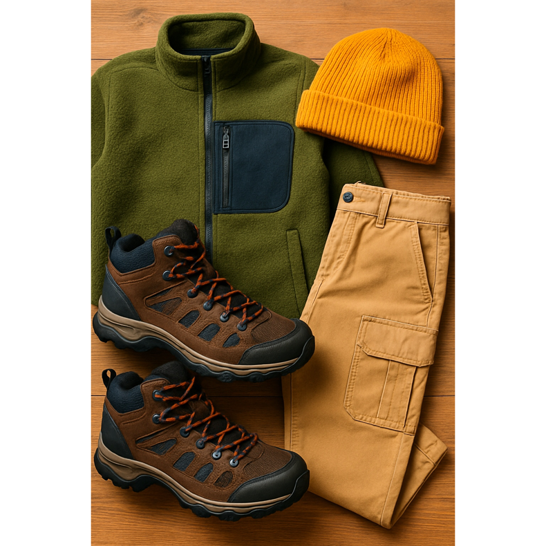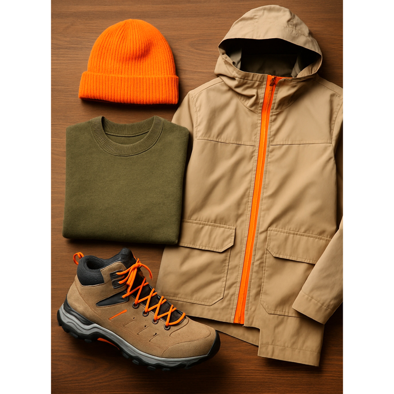 De sleutel tot een succesvolle styling is kleurcontrast. Wandelschoenen hebben vaak levendige, neon-inzetstukken. Profiteer ervan! Als je schoenen met oranje veters hebt, combineer ze dan met een muts in dezelfde kleur of een regenjas met een soortgelijk accent. Houd de rest van de outfit in ingetogen aardse kleuren: beige, groen en bruin, die de essentie vormen van de Gorpcore-stijl.