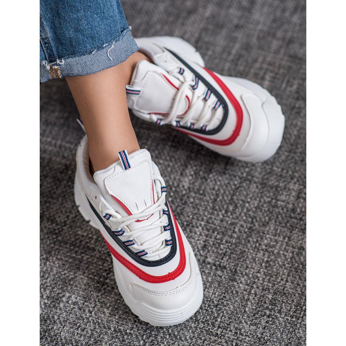 Ontdek de modieuze platformschoenen van Weide in een klassieke witte kleur, die zeker je favoriete onderdeel van je garderobe zal worden. Deze elegante en sportieve sneakers onderscheiden zich door rode en zwarte randen, wat ze karakter geeft.