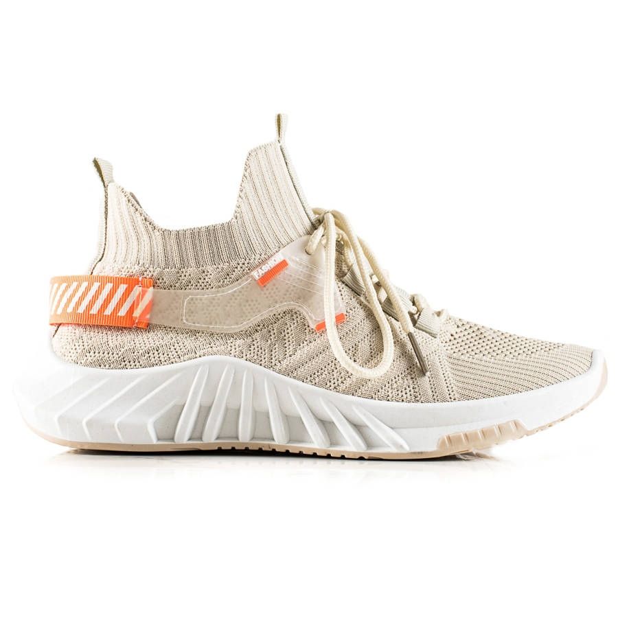 Moderne dames sneakers combineren het comfort van het dagelijkse schoenen met modieus, minimalistisch ontwerp. Volledig gemaakt van lichte, ademende stof in een universele beige kleur, zullen ze perfect werken in de lente en zomer - voor werk, voor een wandeling of ontmoeting met vrienden.