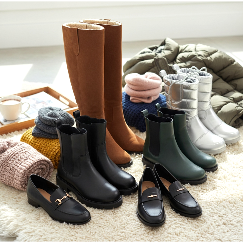 Als u in de winter een dikke, warme donsjas kiest, werken geïsoleerde schoenen het beste. Geïsoleerde laarzen, snowboots of laarzen met bont bieden voldoende bescherming tegen vorst en zien er modieus uit. Het is de moeite waard om modellen met antislipzolen te kiezen, die de veiligheid op ijzige oppervlakken garanderen.