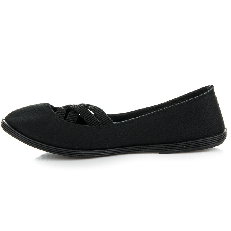 Dit model heeft een ronde neus en een instapsluiting, wat het aan- en uittrekken van de schoenen vergemakkelijkt. Dankzij de universele zwarte kleur passen ze bij vele stijlen, zowel casual als sportief. De zoolhoogte van 3 cm voegt een vleugje elegantie toe en het ontbreken van een hak maakt de schoenen perfect voor dagelijks gebruik.