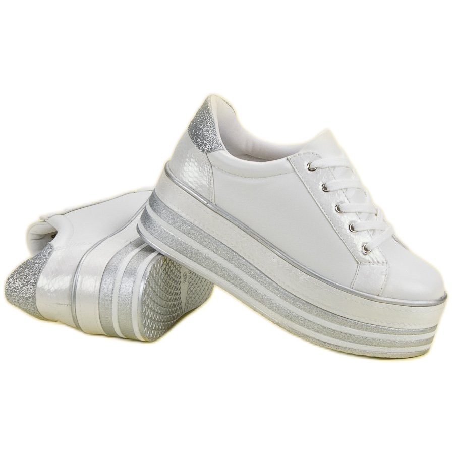 Ontdek unieke platform sneakers van het merk Weide die stijl en comfort perfect combineren. Deze witte glitterschoenen zijn de perfecte keuze voor iedereen die zich wil onderscheiden van de massa. Met een platform van 6 cm hoog zullen de sneakers je benen niet alleen optisch verlengen, maar ook een uniek karakter toevoegen aan elke styling.