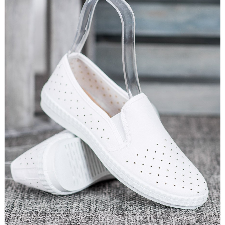 Het bovenwerk van de slipons is gemaakt van duurzame witte stof, waardoor ze een universeel karakter hebben. Het opengewerkte patroon zorgt voor voldoende ventilatie, waardoor je voeten ook op warmere dagen fris blijven. De afgeronde neus en de ingebouwde, zachte hak garanderen draagcomfort en het slip-on systeem maakt het aantrekken van de schoenen makkelijker.