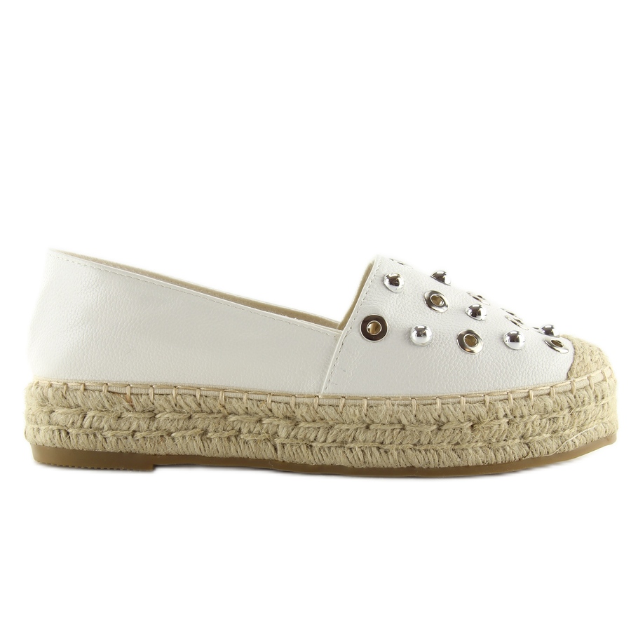 Maak kennis met de witte damesespadrilles 7680 wit - de perfecte keuze voor zomerse dagen! Deze unieke schoenen met hoge zolen combineren elegantie en comfort, waardoor ze een perfecte aanvulling zijn op elke styling. Het gevlochten touwtje rond de zool en op de neus geeft ze lichtheid en subtiliteit, terwijl decoratieve studs en zilveren ringen een vleugje originaliteit introduceren dat de aandacht trekt.