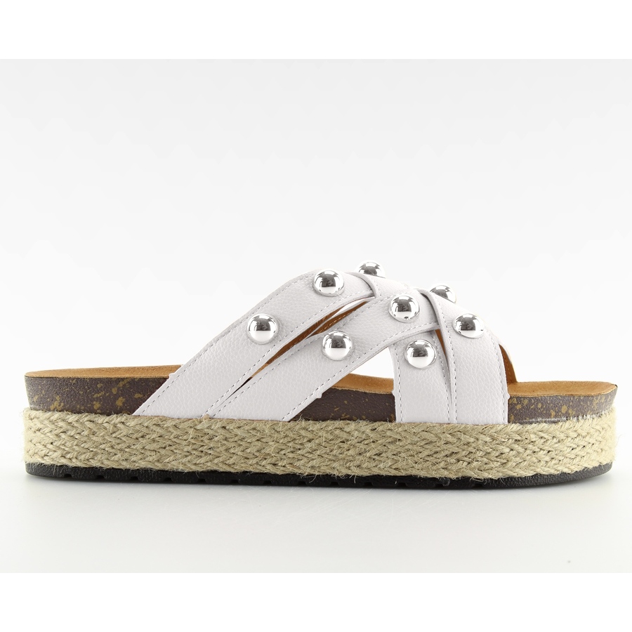 Ontdek de CK22P espadrille-slippers in een elegante witte kleur, die perfect bij elke zomerse stijl passen. Deze unieke damesslippers onderscheiden zich van anderen dankzij een hoge zool afgezet met linnen touwtje en opvallende details in de vorm van zilveren bolletjes die ze karakter en uniekheid geven.