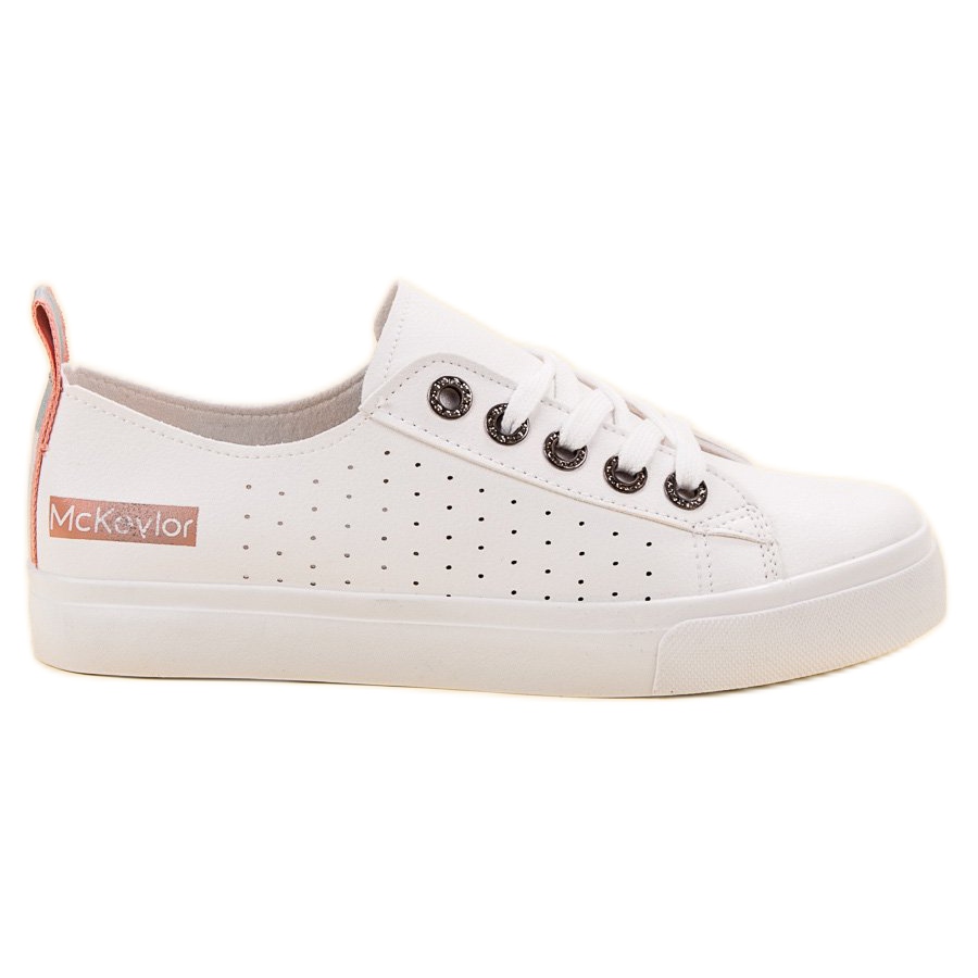 De afgeronde neus voegt elegantie toe en de vetersluiting zorgt voor een perfecte pasvorm aan de voet. Witte MCKEYLOR-sneakers zijn een perfecte keuze voor elk seizoen - ze zullen het even goed doen op lente- en zomerdagen, maar ook tijdens de koudere maanden.