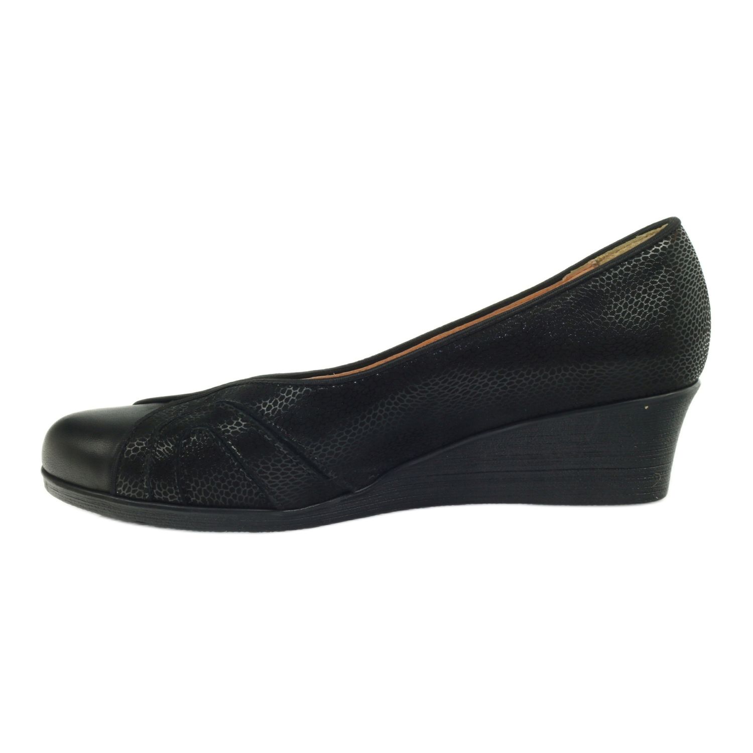 Espinto zwarte wedge pumps zijn een perfecte combinatie van elegantie en comfort. Het model wz.232, speciaal voor vrouwen die zowel stijl als comfort waarderen, maakt indruk met zijn klassieke vorm en zorgvuldige afwerking van natuurlijk leer met reliëf. Een wig van 4,5 cm hoog voegt subtiele pit toe en zorgt voor stabiliteit en comfort bij dagelijks gebruik.