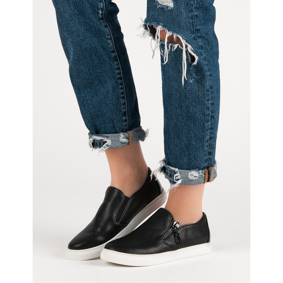 Zwarte slippons van Weide zijn een elegant en stijlvol voorstel voor moderne vrouwen die waarde hechten aan comfort en een modieuze uitstraling. Deze instapschoenen, zonder hak, zijn gemaakt van hoogwaardig ecologisch leer, waardoor ze een ideale keuze zijn voor mensen die ecologie belangrijk vinden. Een interessant detail is de decoratieve ritssluiting, die er originaliteit en karakter aan toevoegt.